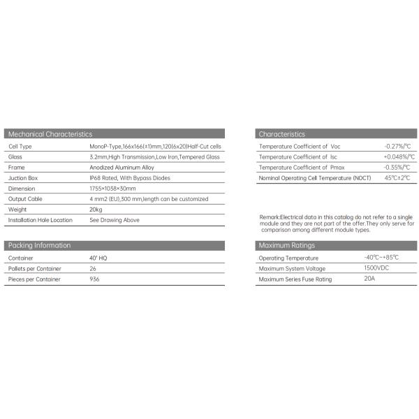 Cell type : Mono P-Type,166*166(±1)mm,120(6*20)Half-Cut Cells